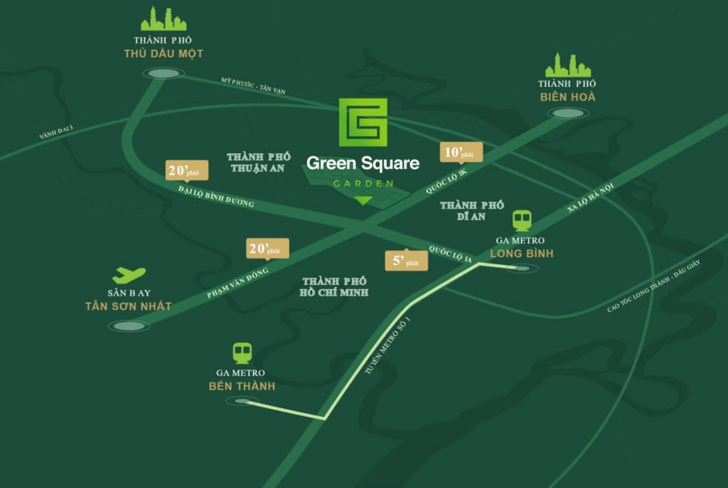 Tọa lạc ngay nút giao Quốc lộ 1K – GS1, Green Tower kết nối nhanh chóng đến TP. HCM, Biên Hòa và trung tâm Dĩ An, thuận tiện cho cả an cư lẫn đầu tư.